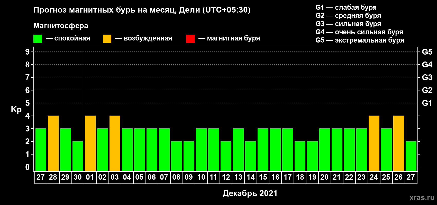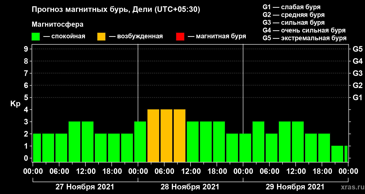 Прогноз магнитных бурь Дели — 27 ноября 2021 года