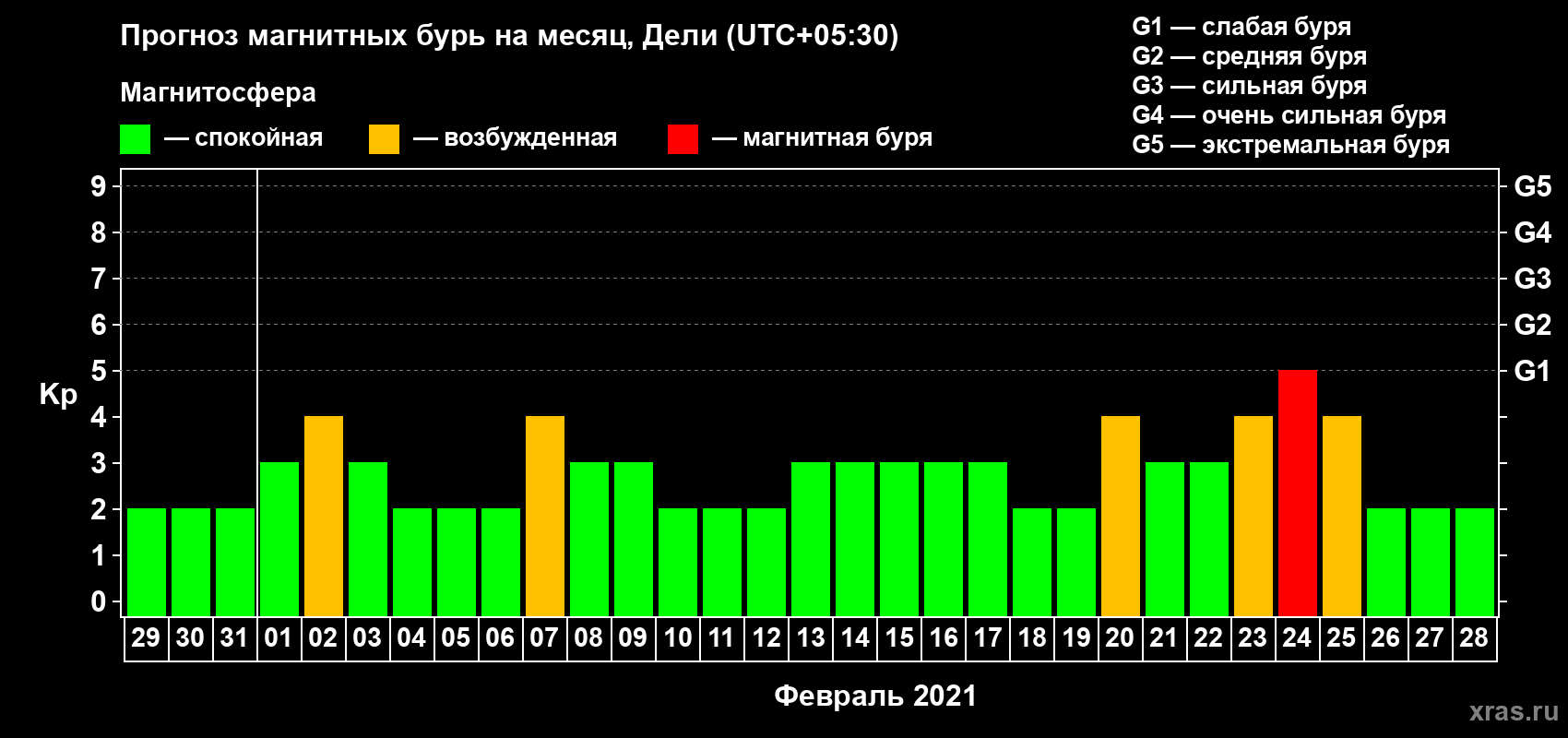 Прогноз магнитных бурь Дели — 29 января 2021 года