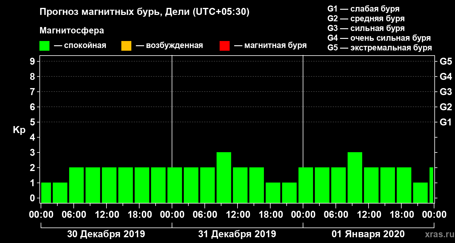 Прогноз магнитных бурь Дели — 30 декабря 2019 года