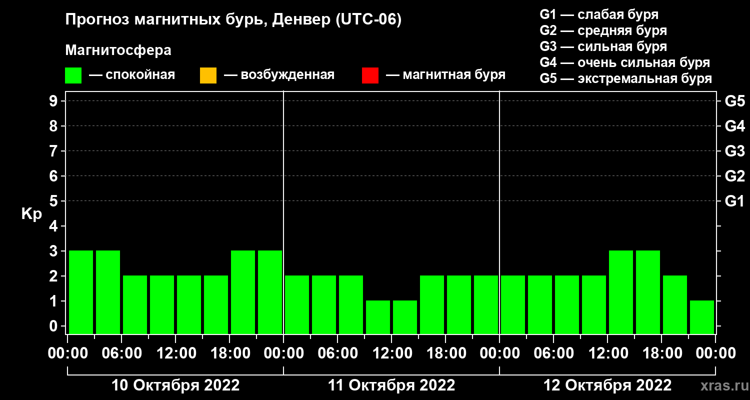 Прогноз магнитных бурь в Денвере — 10 октября 2022 года