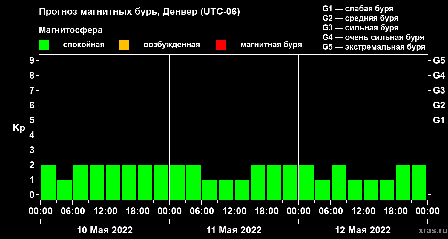 Прогноз магнитных бурь в Денвере — 10 мая 2022 года