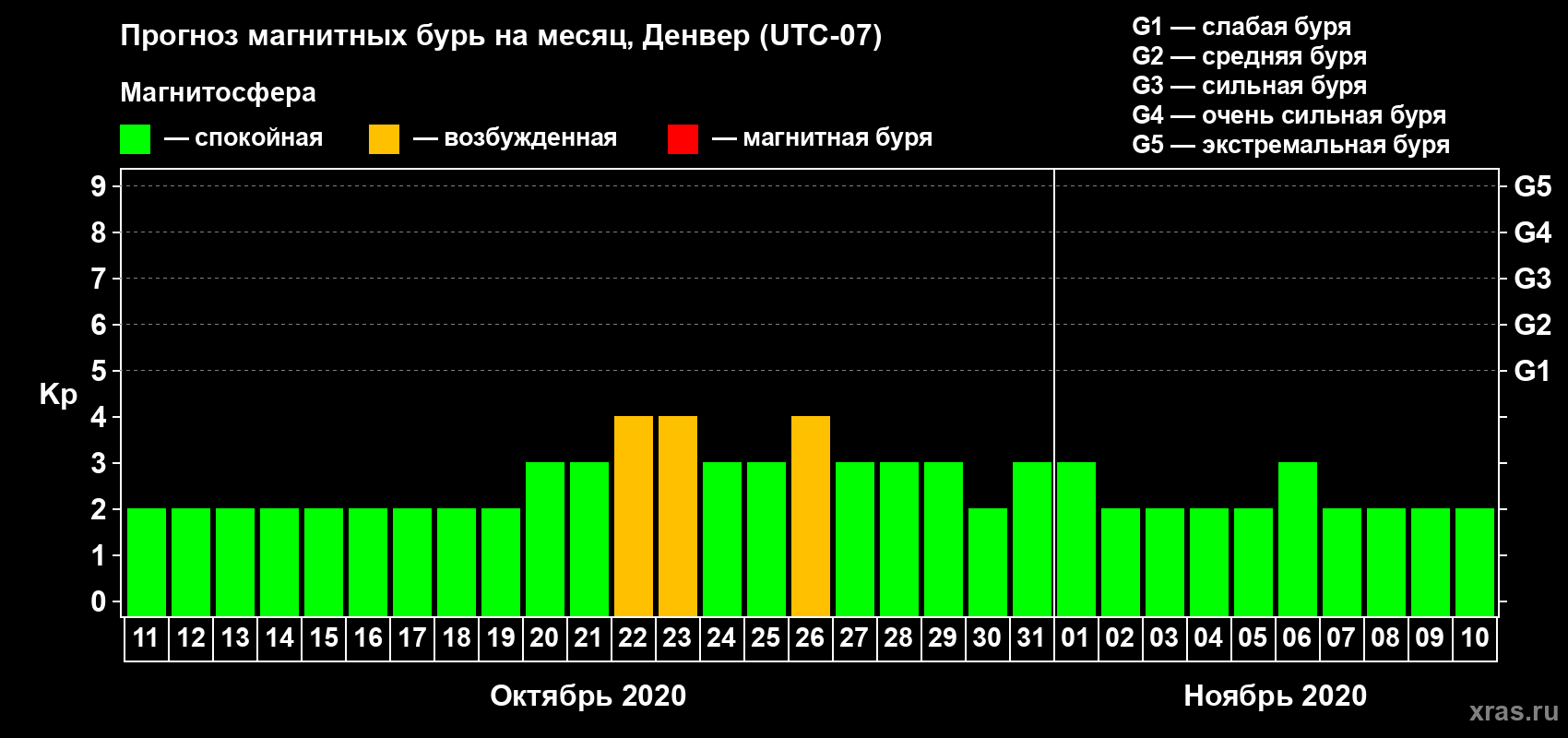 Прогноз магнитных бурь в Денвере — 11 октября 2020 года