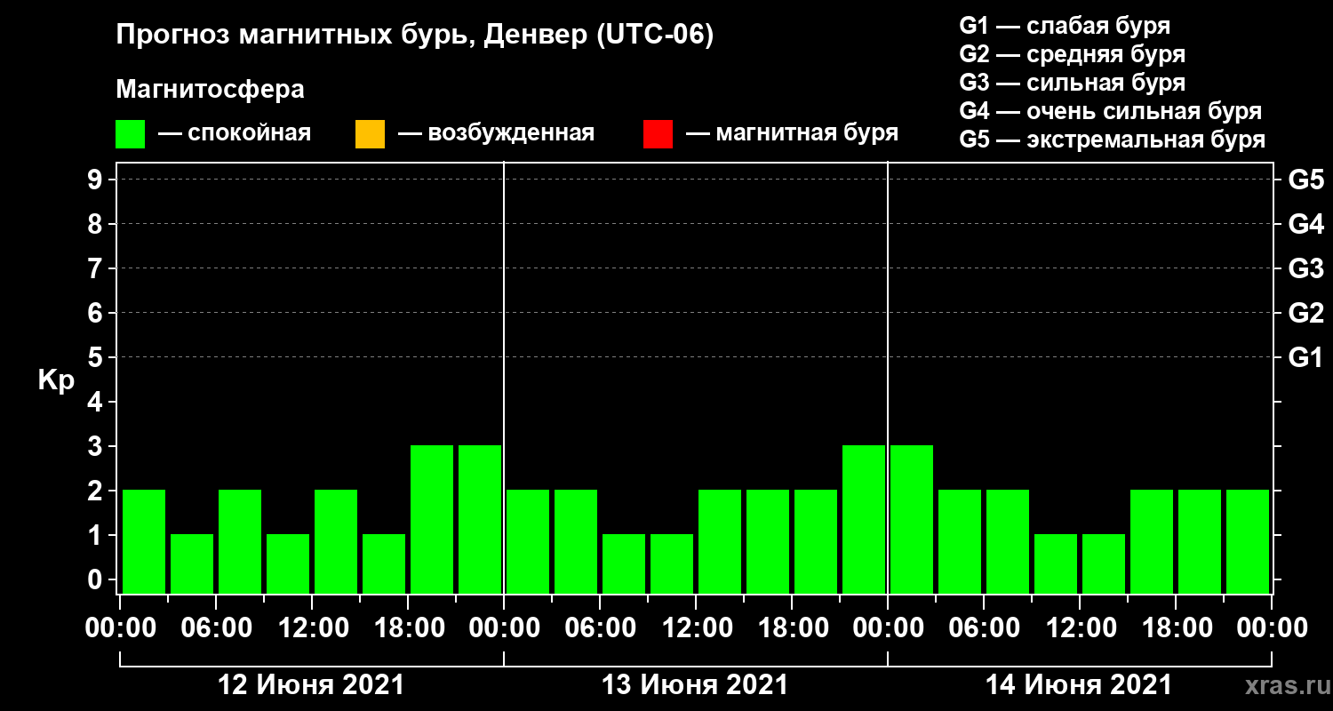 Прогноз магнитных бурь в Денвере на 12 июня 2021 года