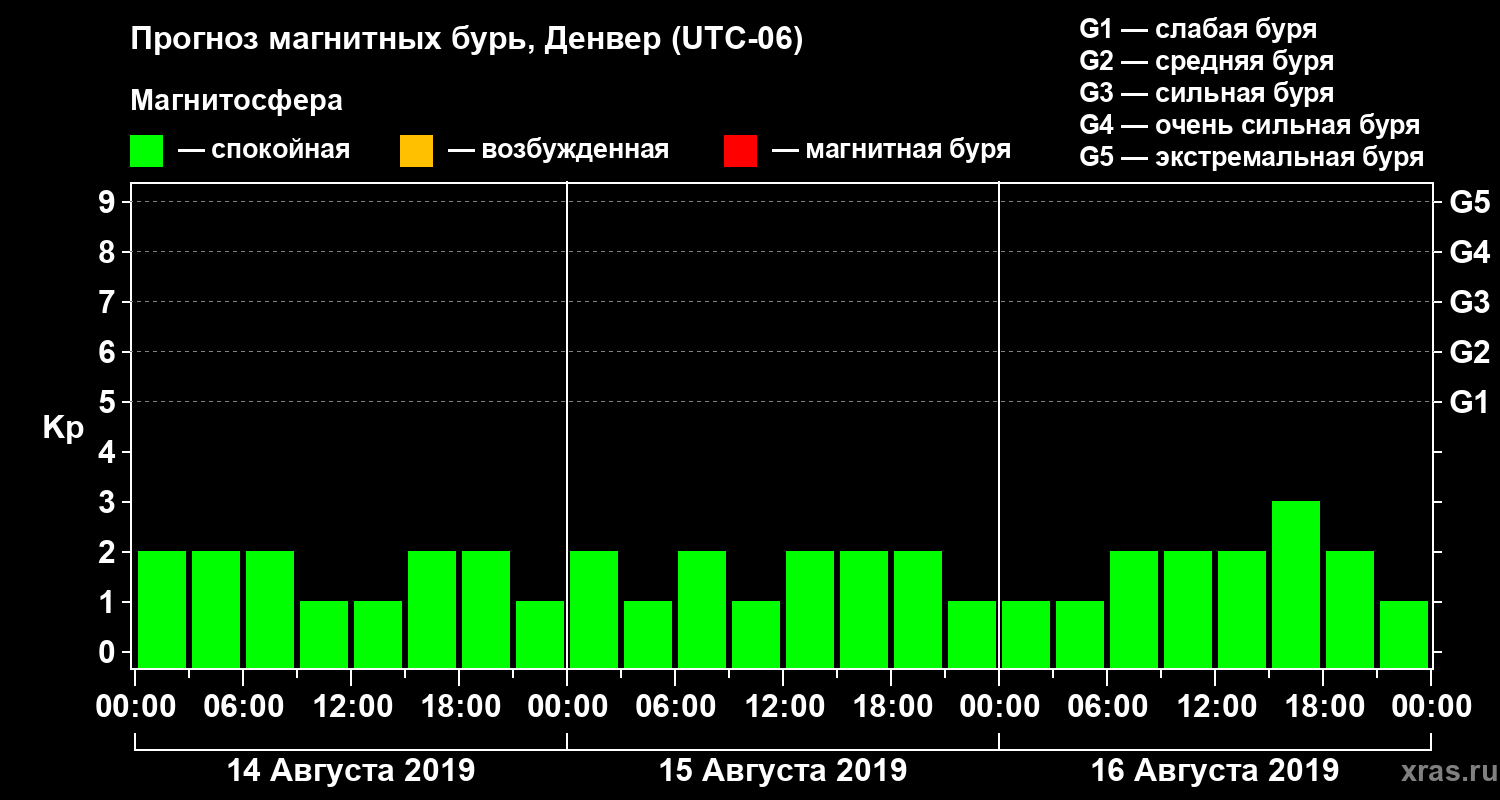 Прогноз магнитных бурь в Денвере — 14 августа 2019 года