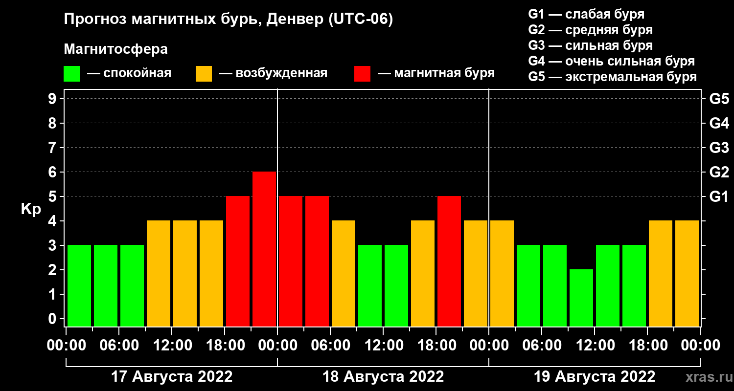 Прогноз магнитных бурь в Денвере на 17 августа 2022 года
