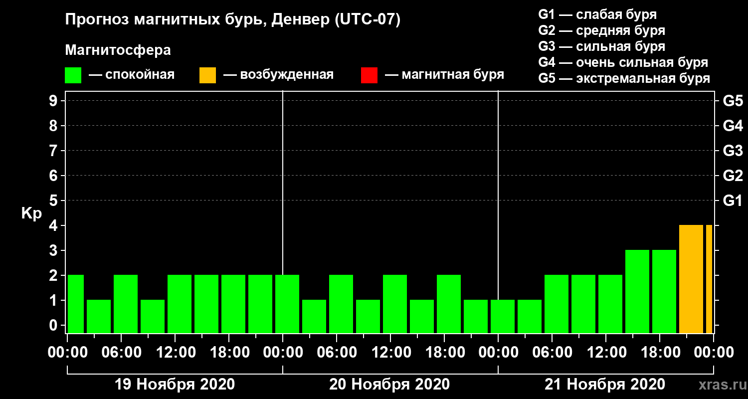 Прогноз магнитных бурь в Денвере — 19 ноября 2020 года
