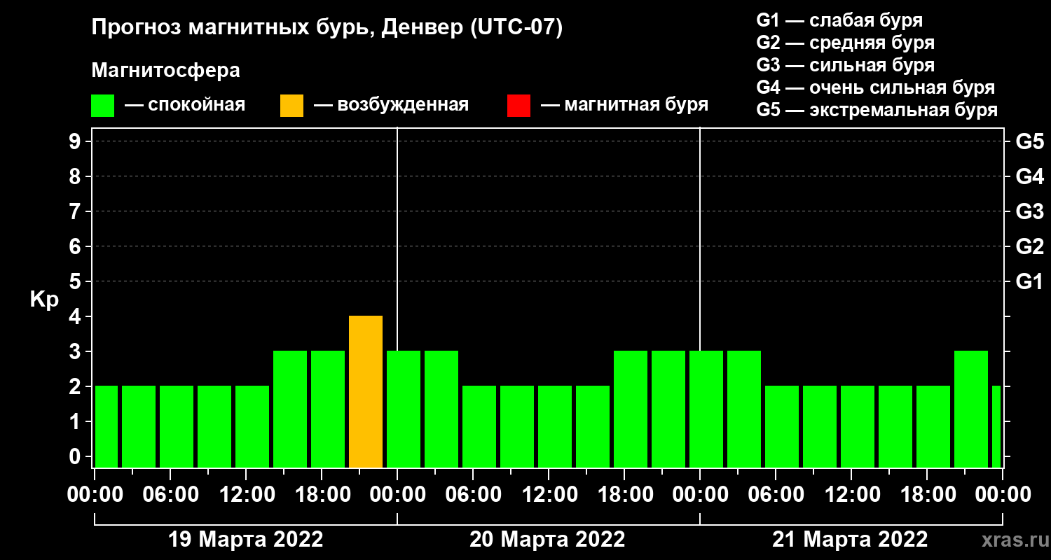 Прогноз магнитных бурь в Денвере — 19 марта 2022 года