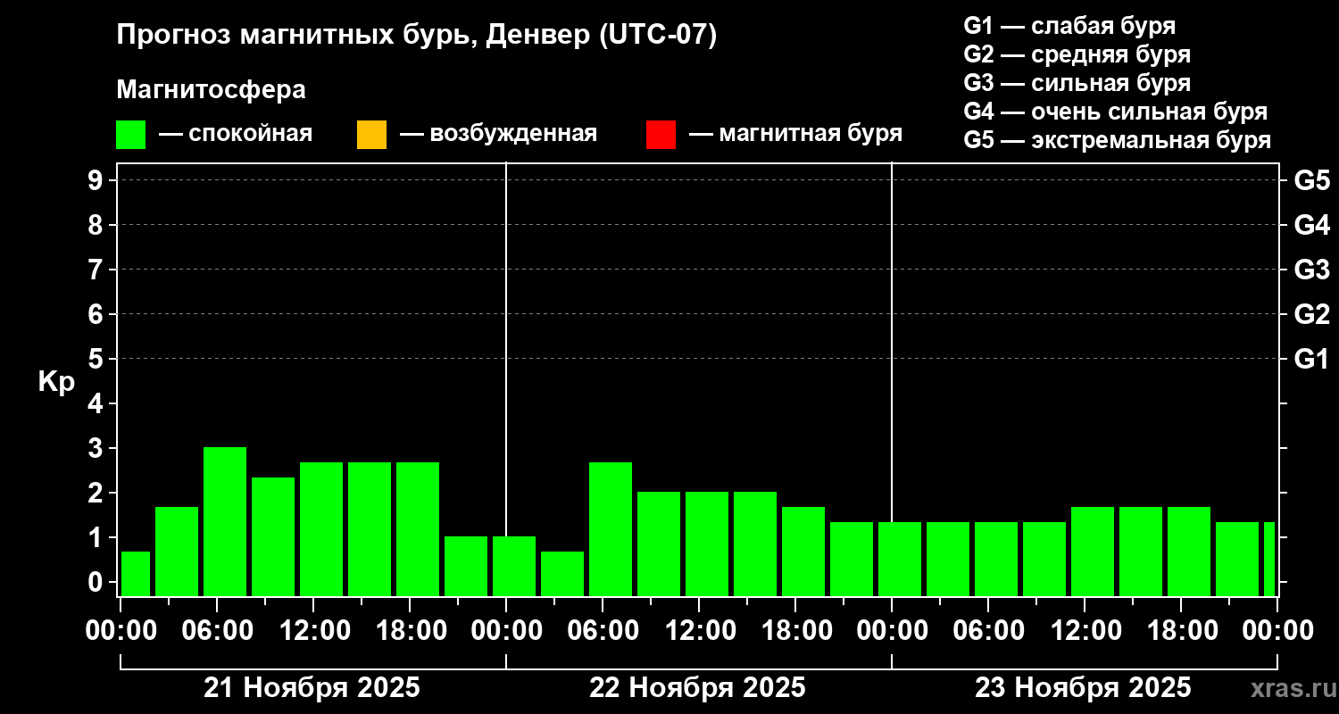 Прогноз магнитных бурь в Денвере на 21 ноября 2025 года
