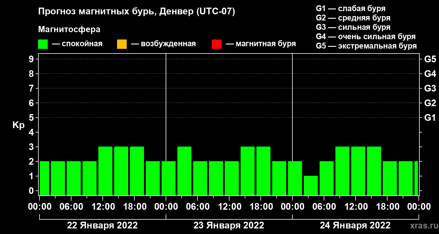Прогноз магнитных бурь в Денвере — 22 января 2022 года