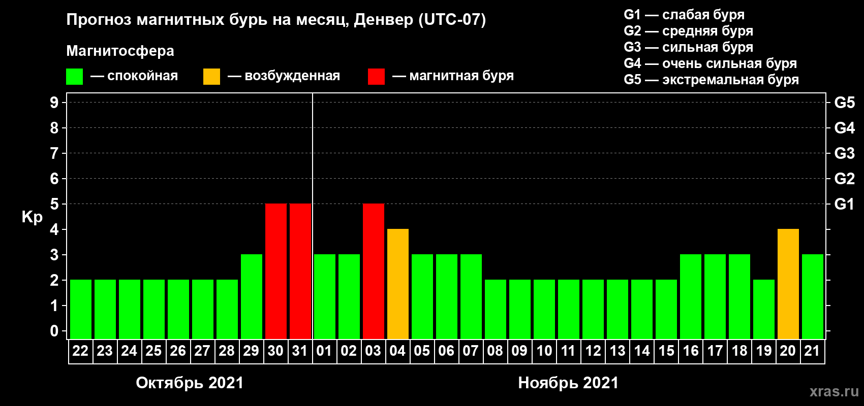 Прогноз магнитных бурь в Денвере — 22 октября 2021 года