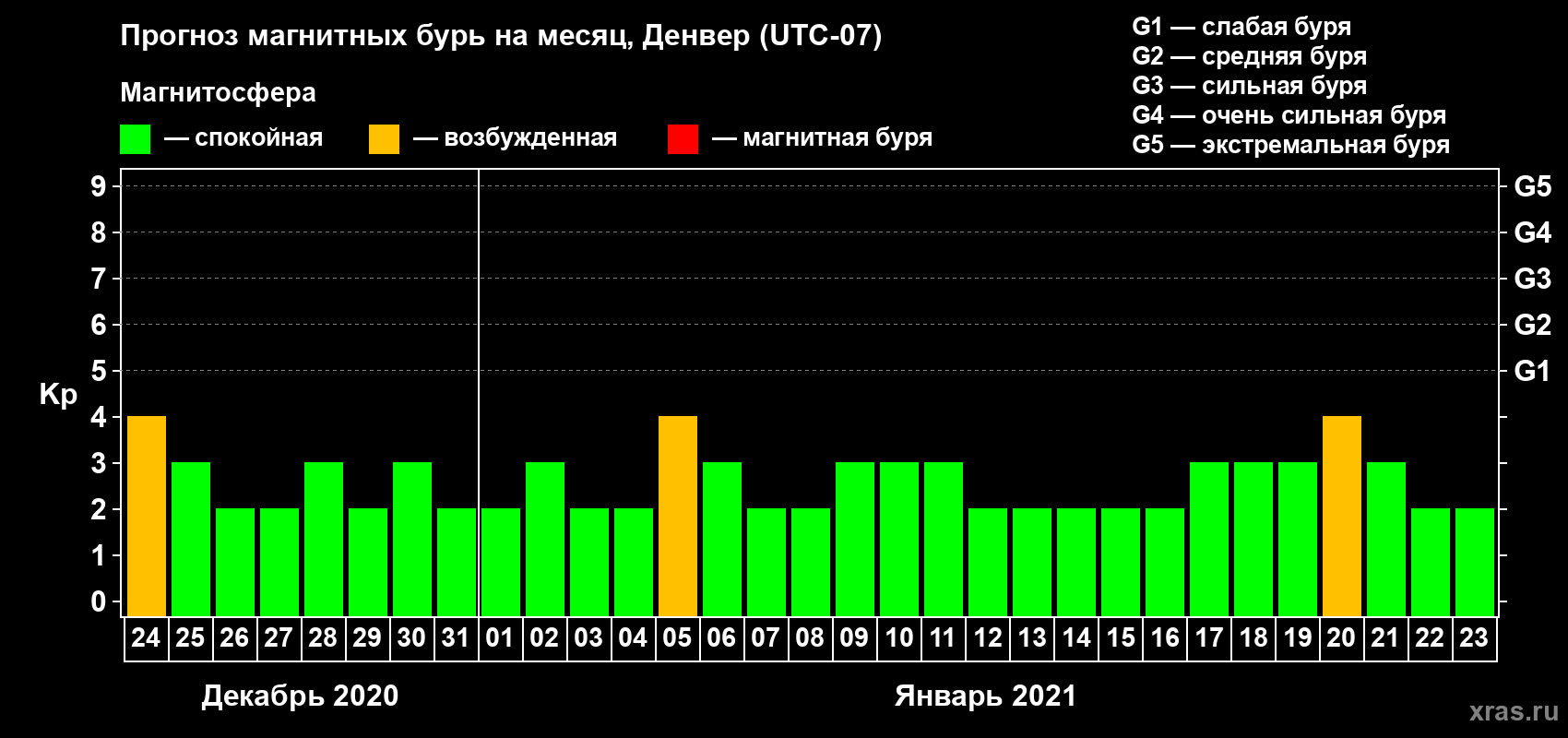 Прогноз магнитных бурь в Денвере — 24 декабря 2020 года
