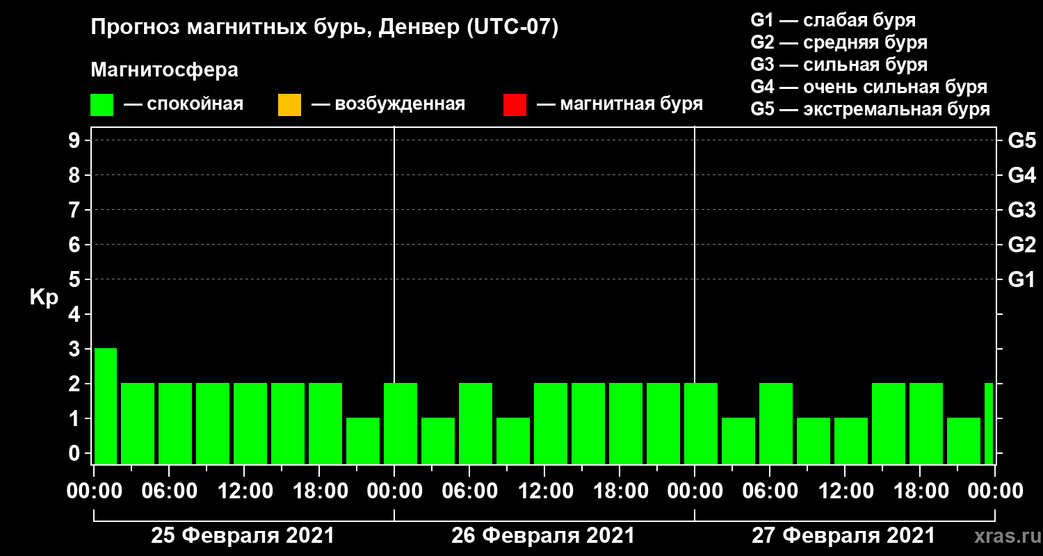 Прогноз магнитных бурь в Денвере на 25 февраля 2021 года