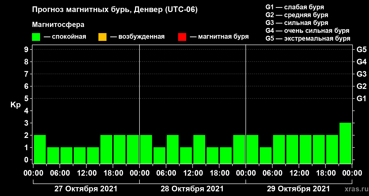 Прогноз магнитных бурь в Денвере — 27 октября 2021 года