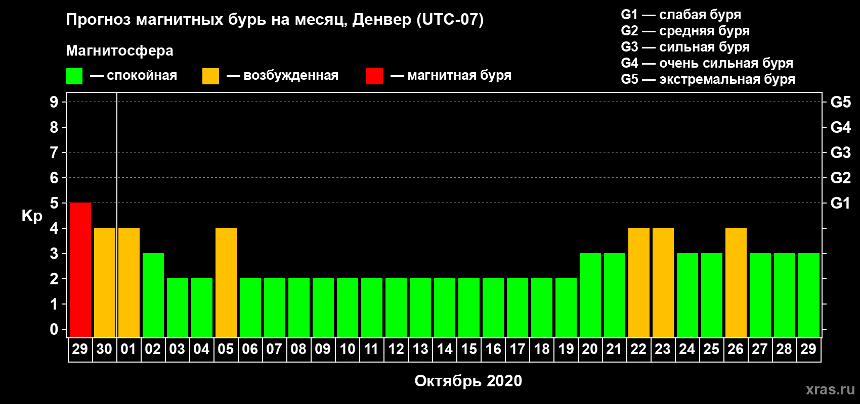 Прогноз магнитных бурь в Денвере — 29 сентября 2020 года