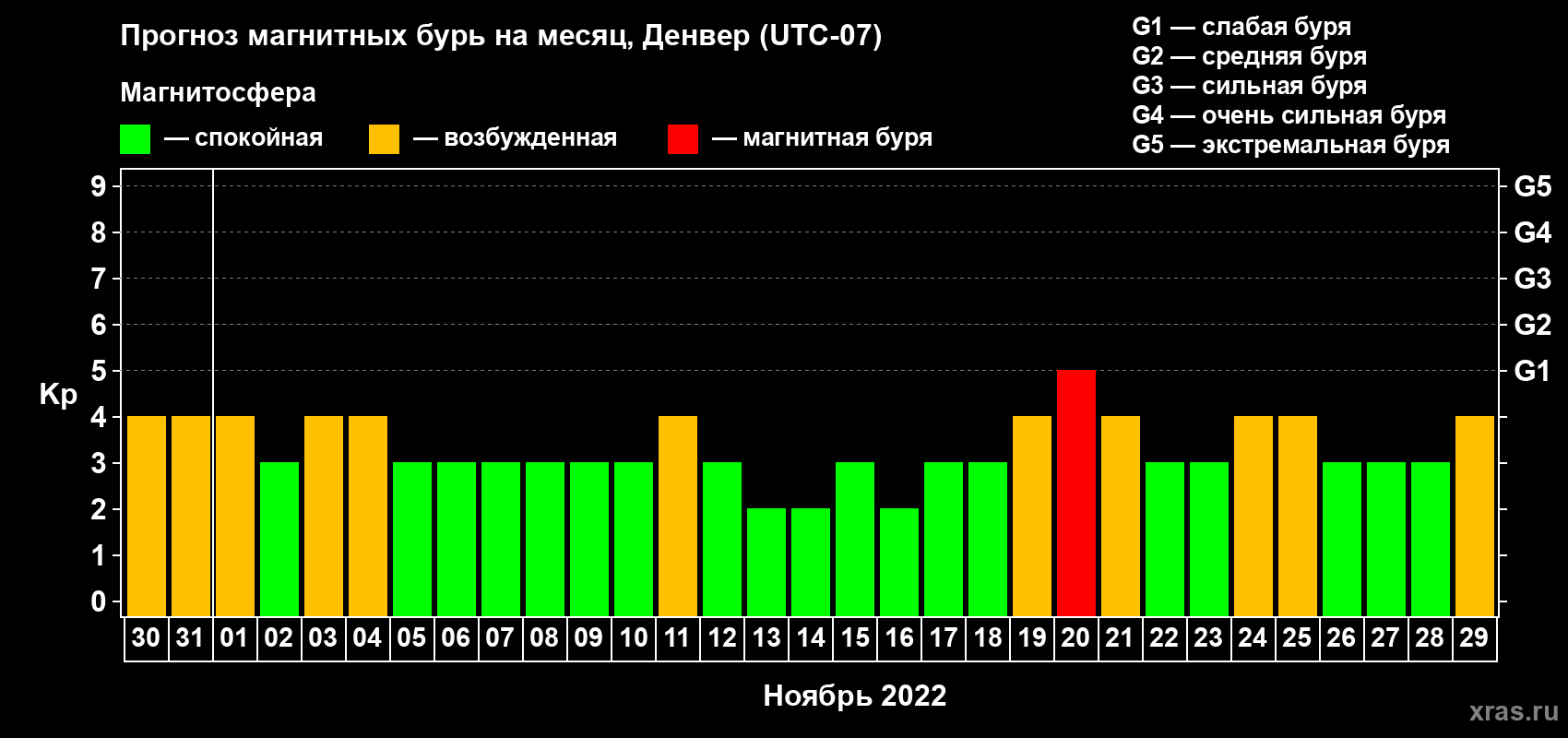 Прогноз магнитных бурь в Денвере на 30 октября 2022 года