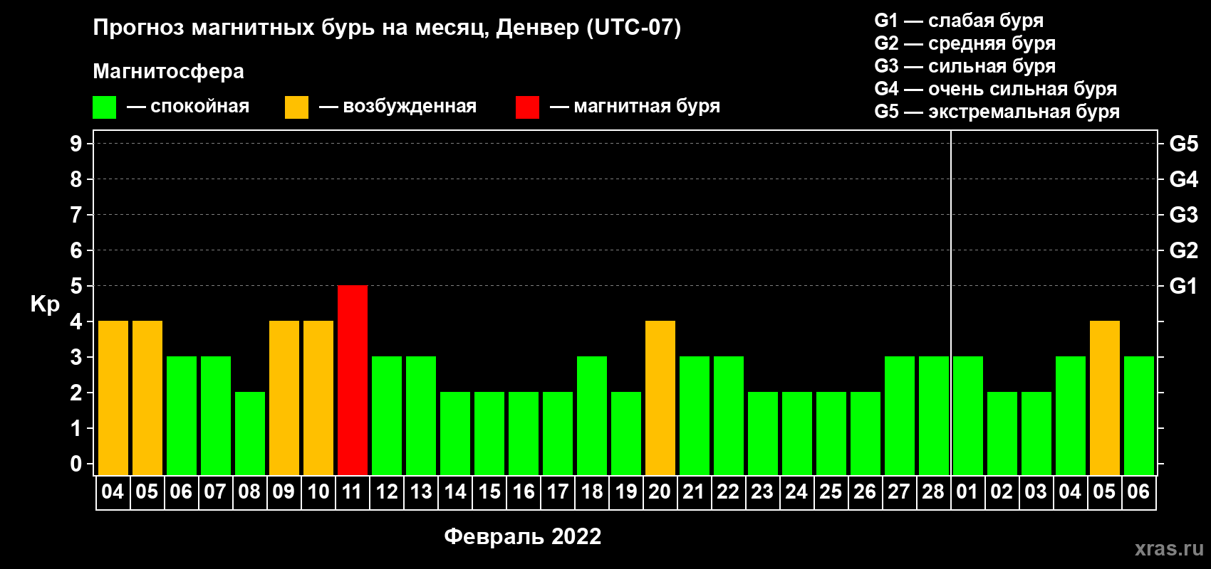 Прогноз магнитных бурь в Денвере на 4 февраля 2022 года
