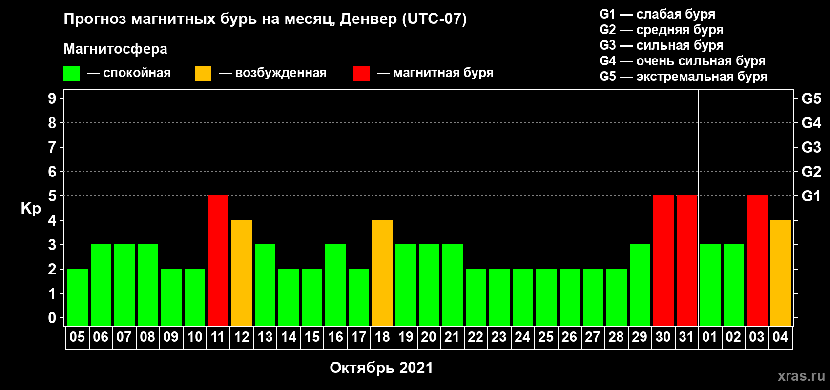 Прогноз магнитных бурь в Денвере — 5 октября 2021 года