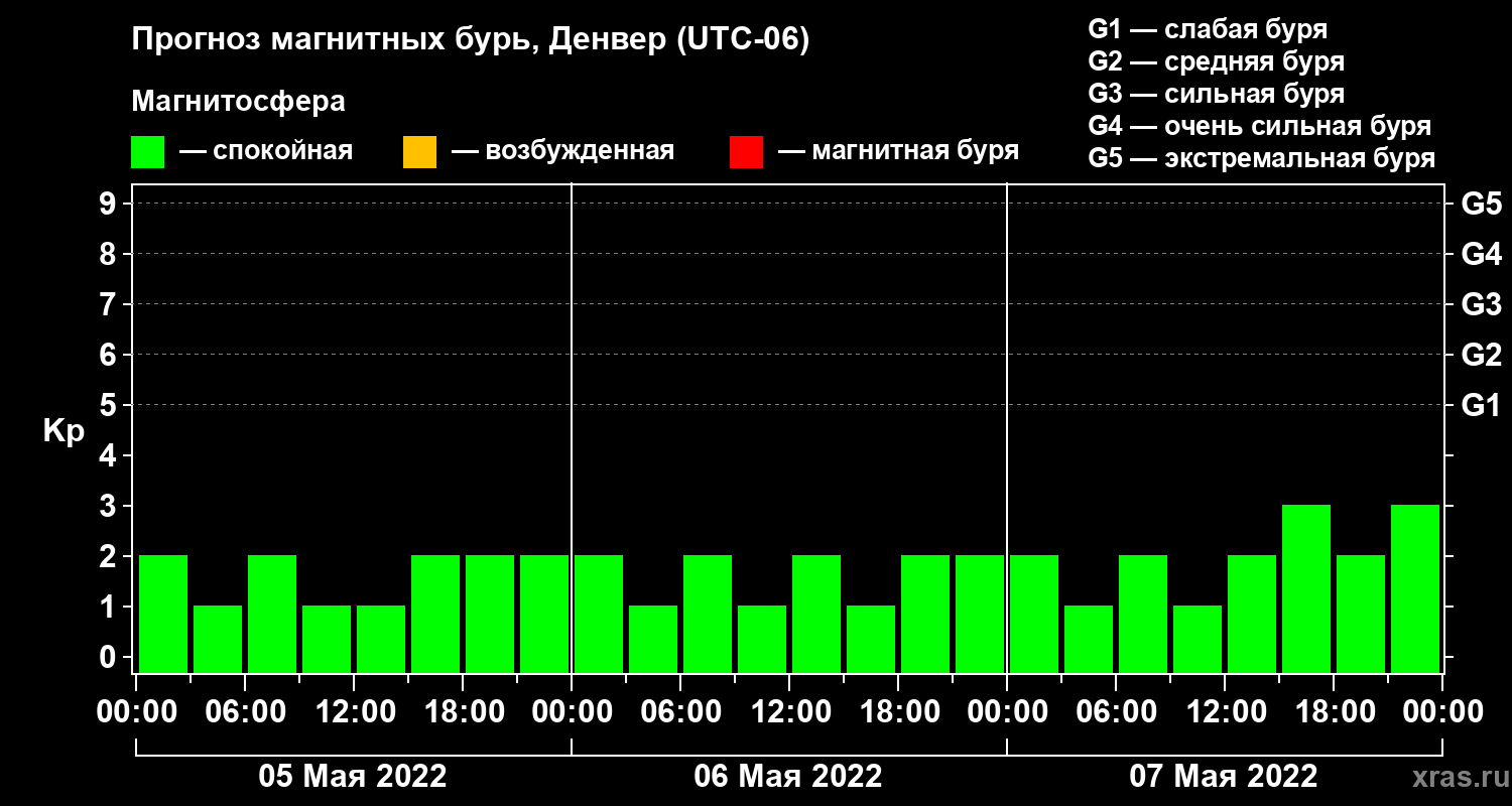 Прогноз магнитных бурь в Денвере на 5 мая 2022 года