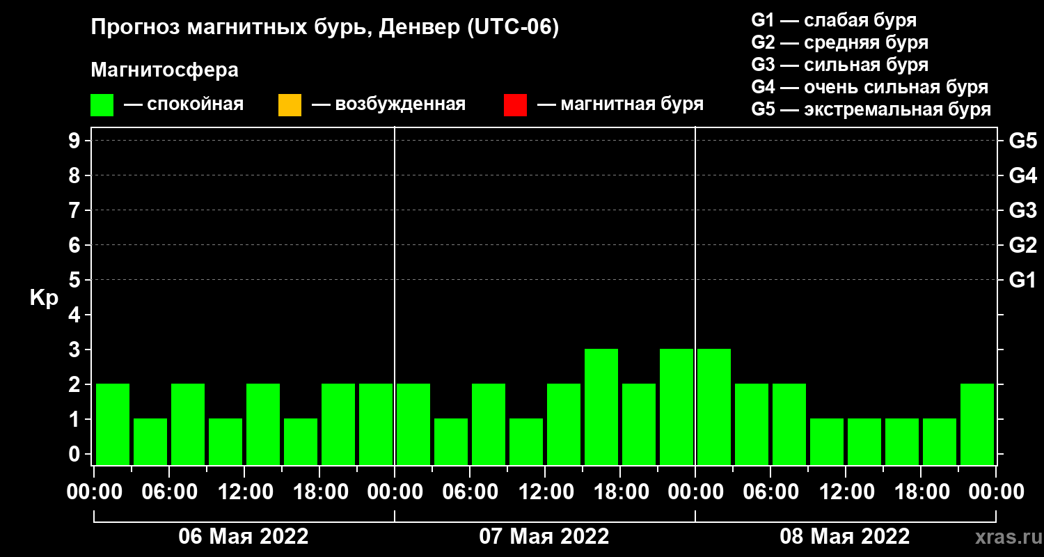 Прогноз магнитных бурь в Денвере — 6 мая 2022 года