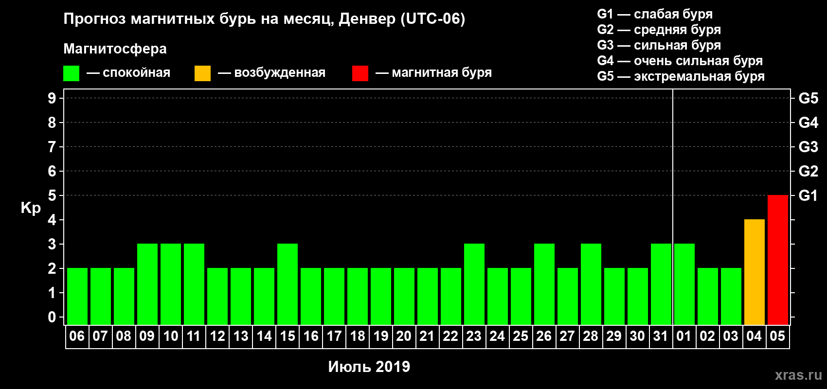 Прогноз магнитных бурь в Денвере — 6 июля 2019 года