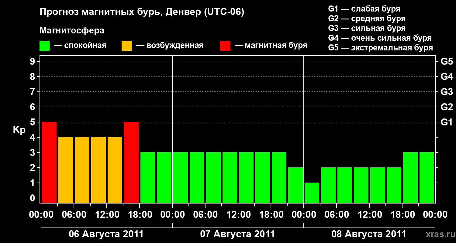 Прогноз магнитных бурь в Денвере — 6 августа 2011 года