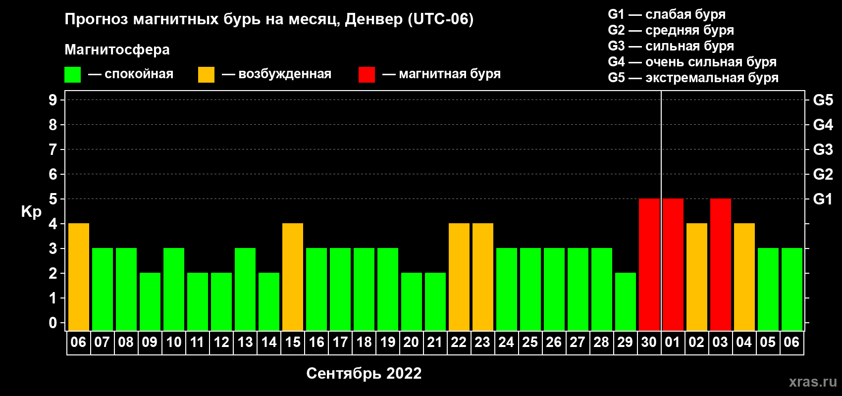 Прогноз магнитных бурь в Денвере — 6 сентября 2022 года