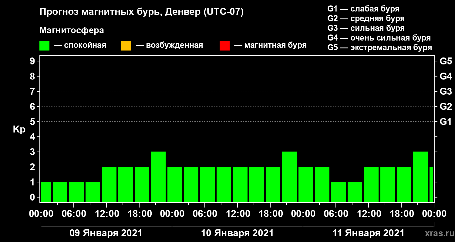 Прогноз магнитных бурь в Денвере — 9 января 2021 года