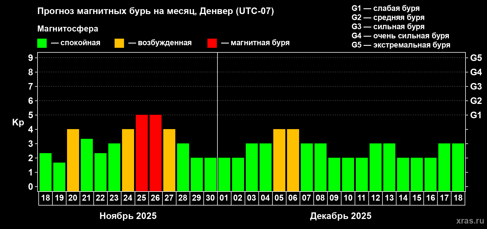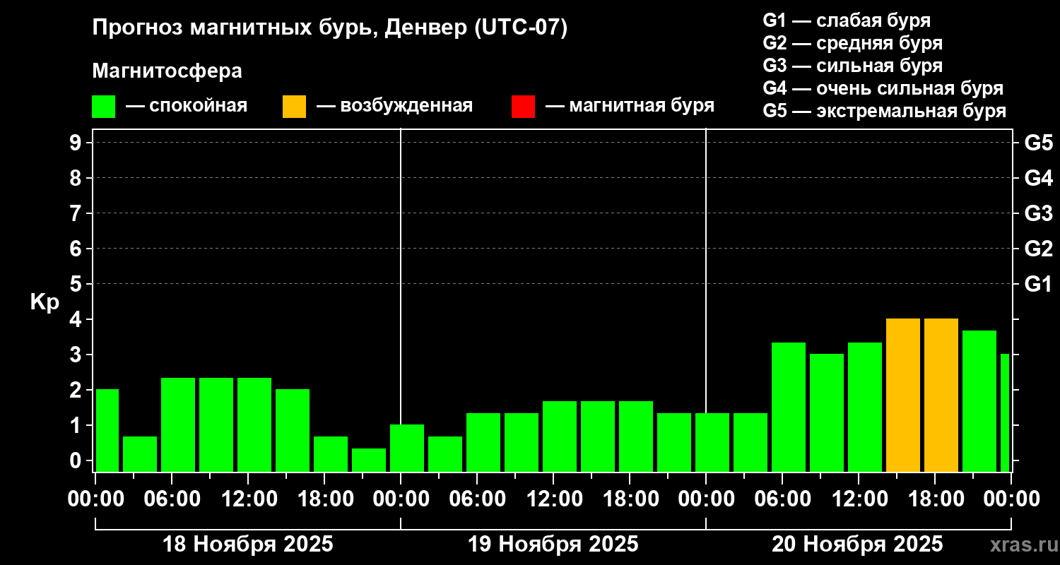 Прогноз магнитных бурь в Денвере — 18 ноября 2025 года