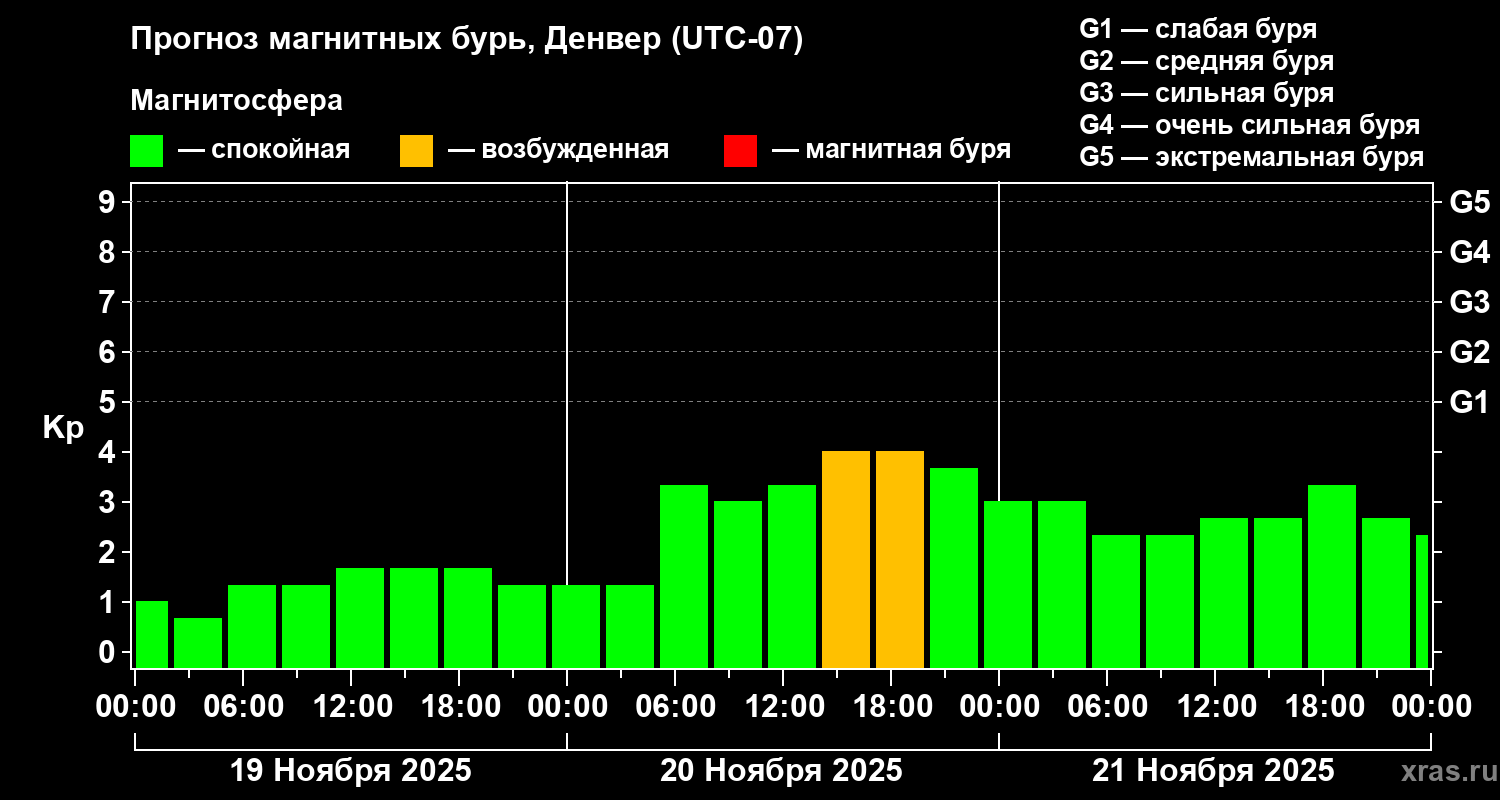 Прогноз магнитных бурь в Денвере — 19 ноября 2025 года