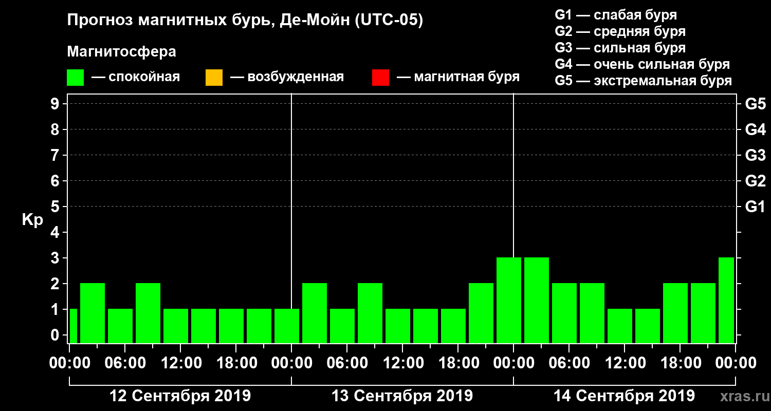 Прогноз магнитных бурь в Де-Мойне на 12 сентября 2019 года