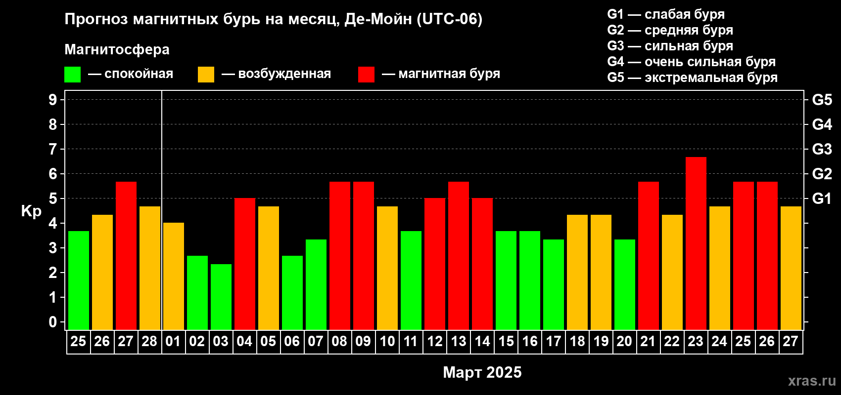 Прогноз магнитных бурь в Де-Мойне — 25 февраля 2025 года