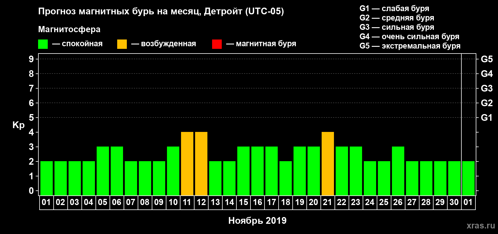 Прогноз магнитных бурь в Детройте — 1 ноября 2019 года