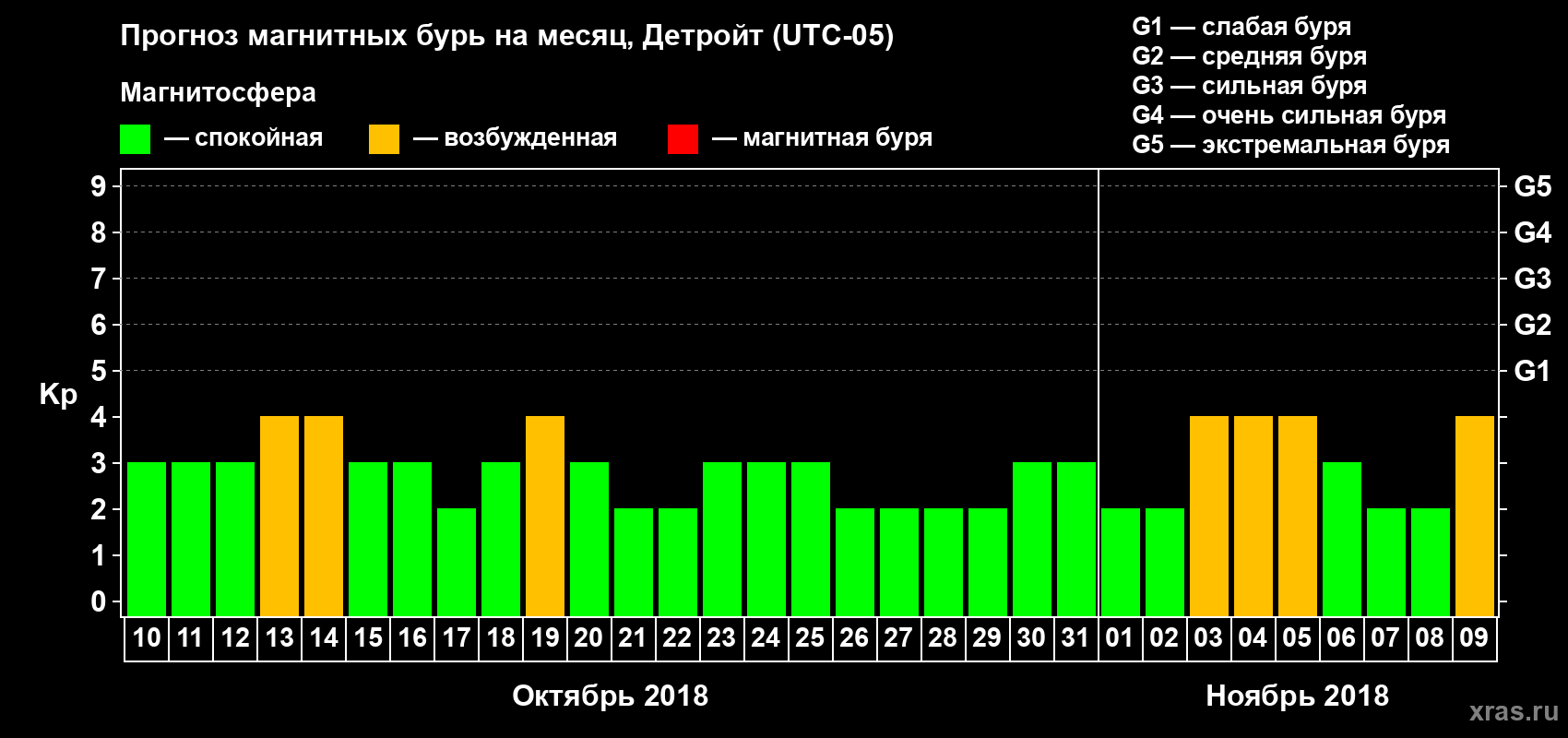 Прогноз магнитных бурь в Детройте — 10 октября 2018 года