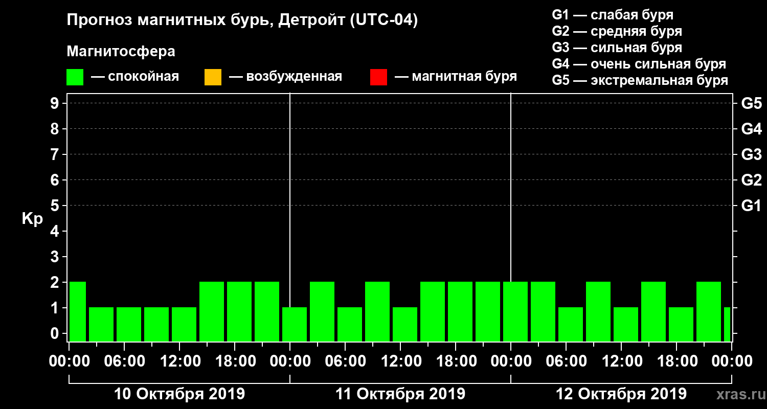 Прогноз магнитных бурь в Детройте — 10 октября 2019 года
