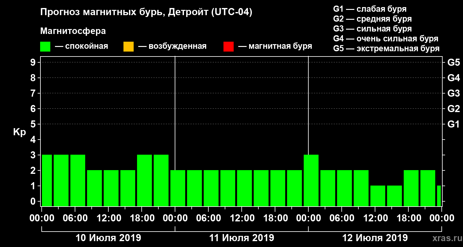Прогноз магнитных бурь в Детройте — 10 июля 2019 года