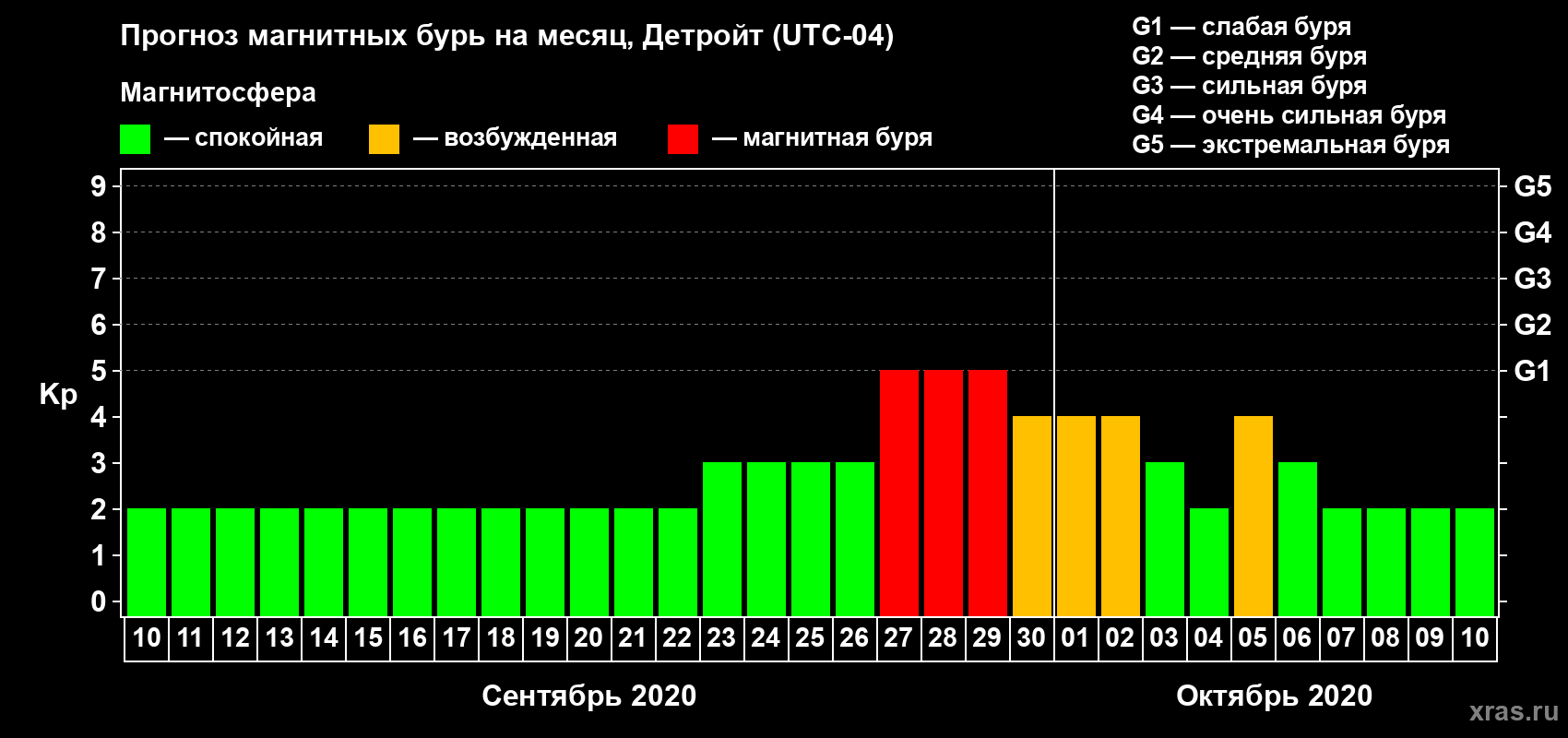 Прогноз магнитных бурь в Детройте — 10 сентября 2020 года