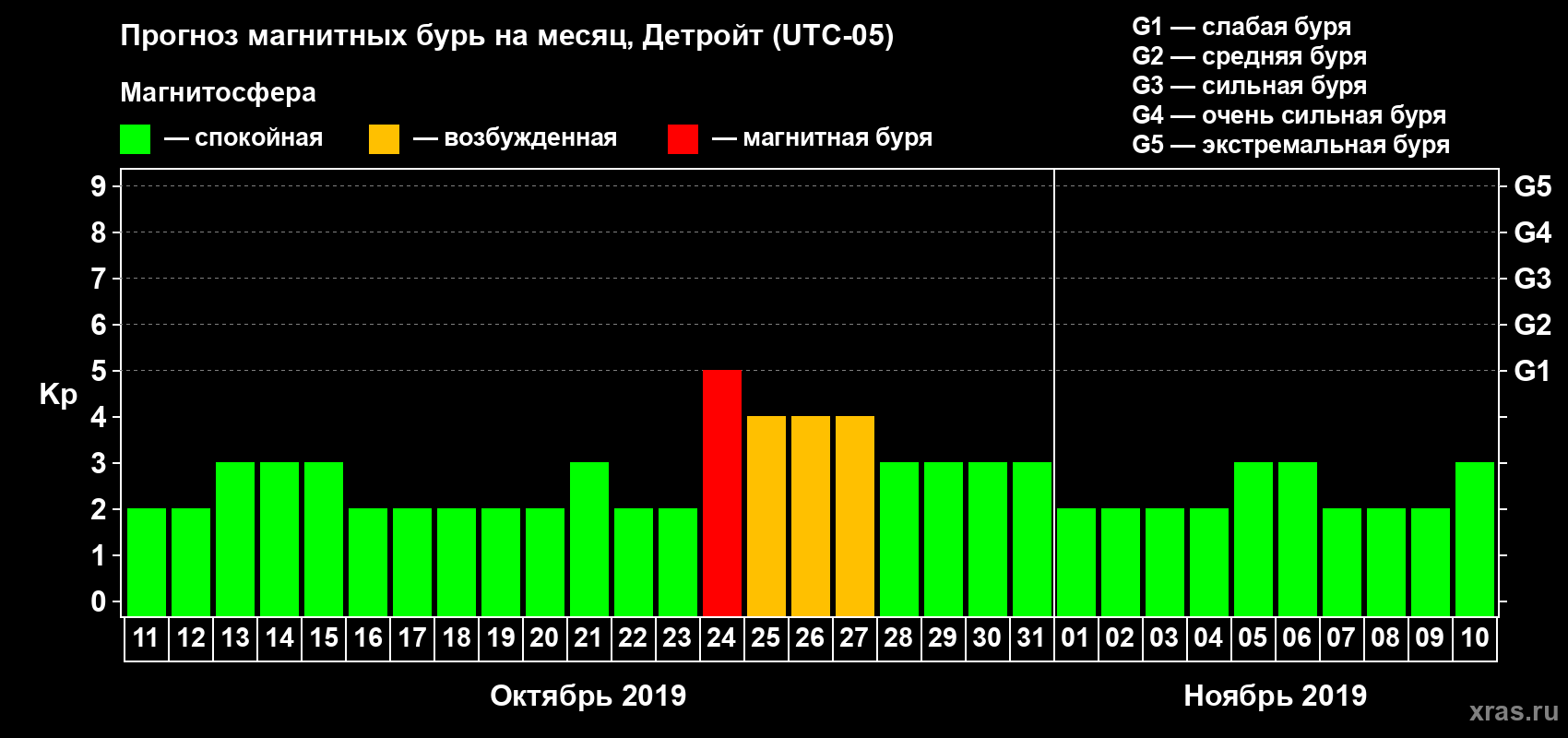 Прогноз магнитных бурь в Детройте — 11 октября 2019 года