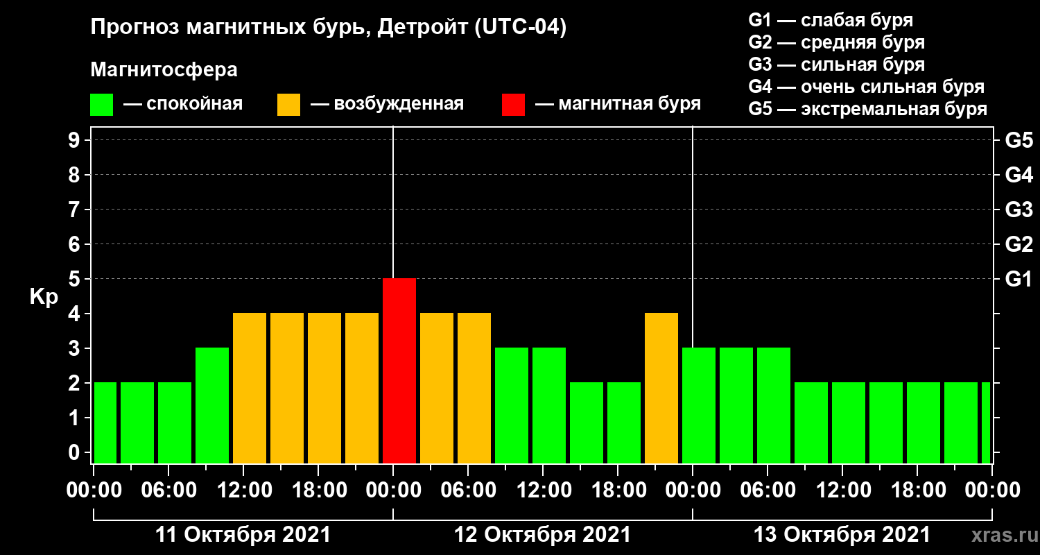 Прогноз магнитных бурь в Детройте — 11 октября 2021 года