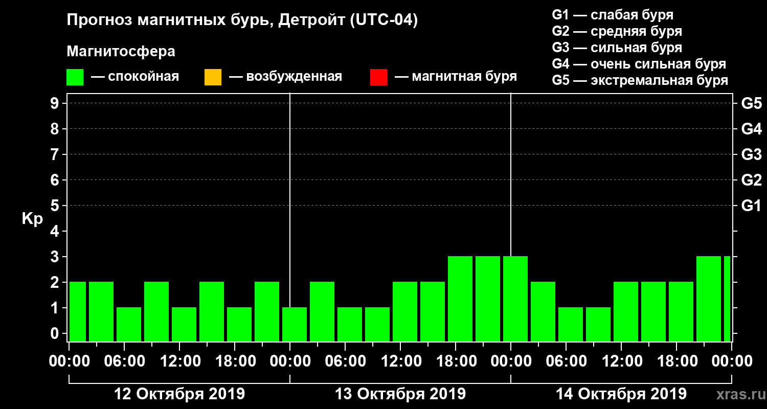 Прогноз магнитных бурь в Детройте — 12 октября 2019 года