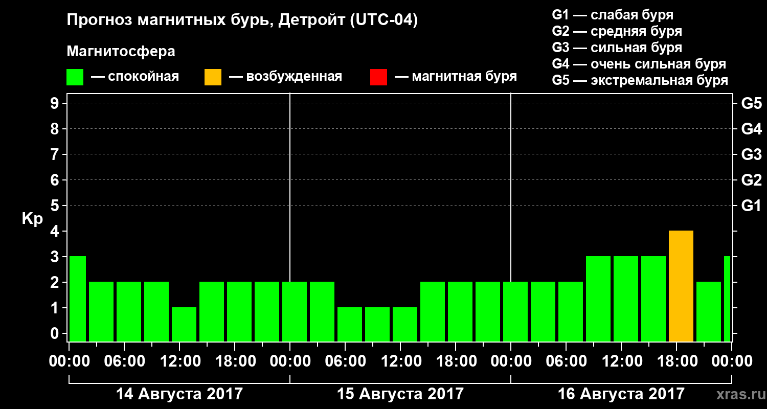 Прогноз магнитных бурь в Детройте — 14 августа 2017 года