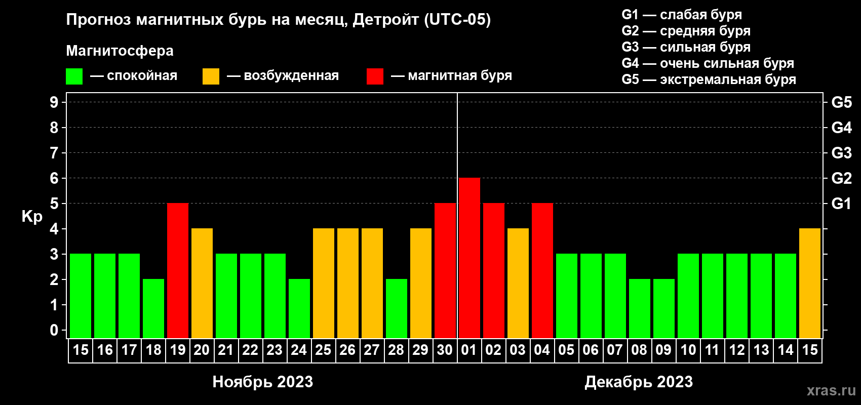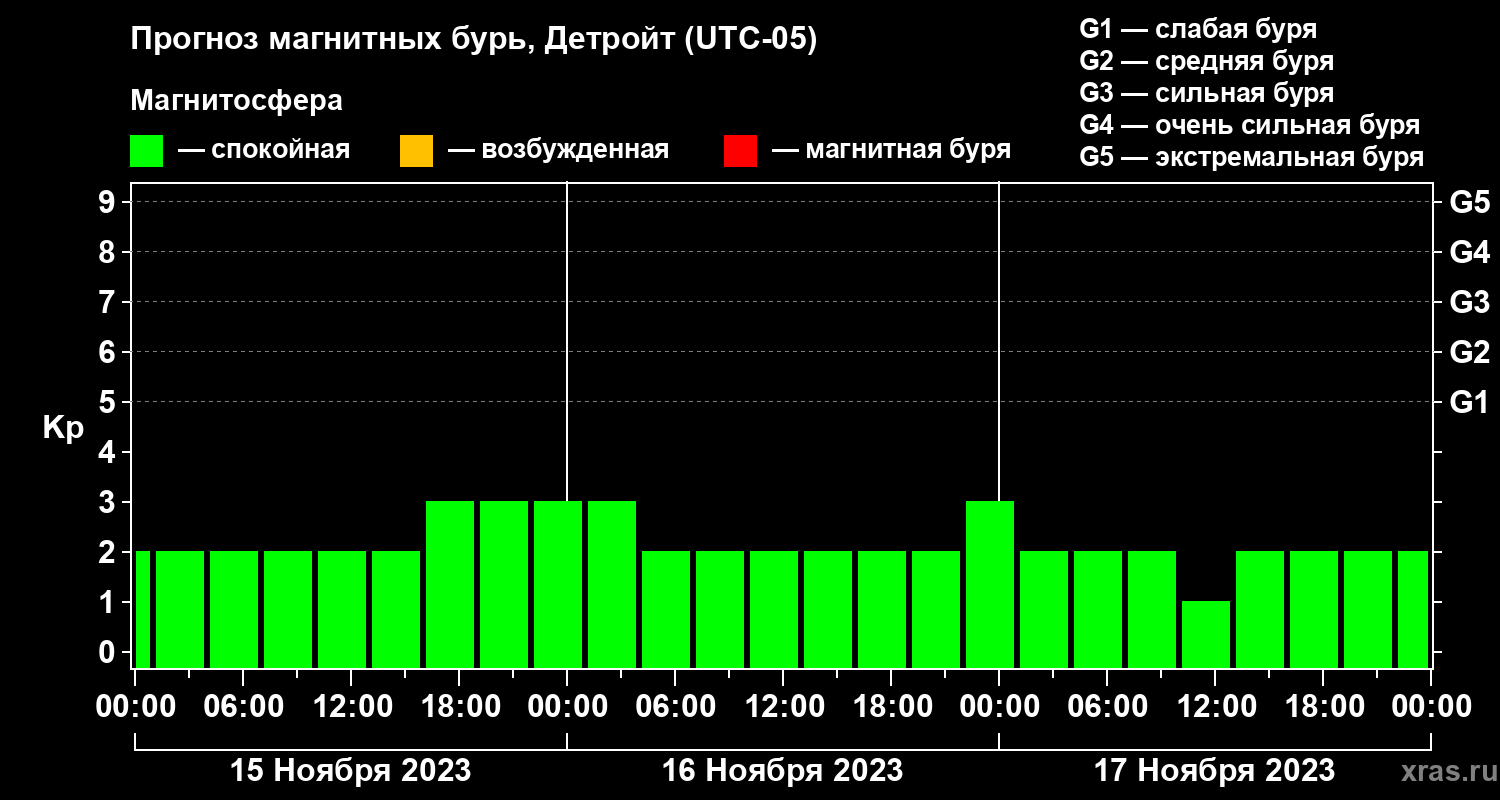 Прогноз магнитных бурь в Детройте — 15 ноября 2023 года