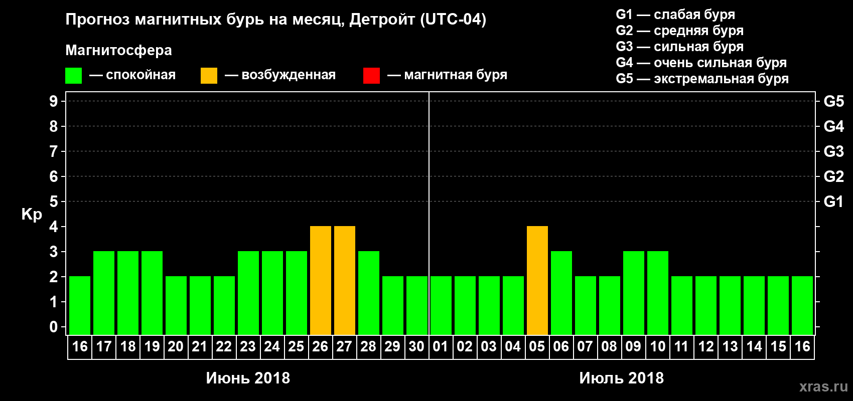 Прогноз магнитных бурь в Детройте на 16 июня 2018 года