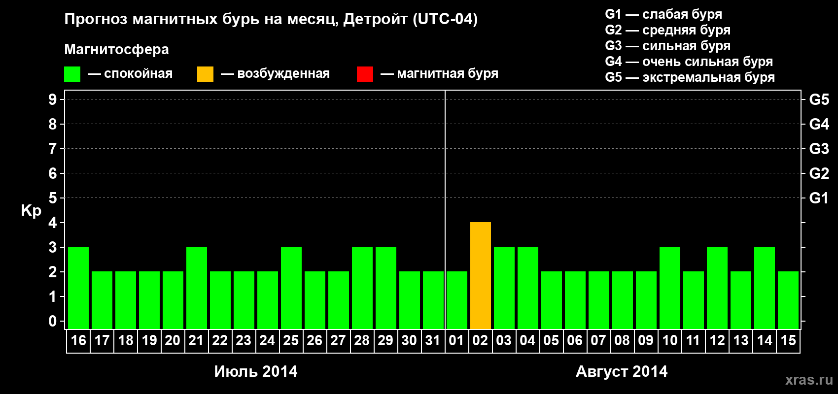 Прогноз магнитных бурь в Детройте — 16 июля 2014 года