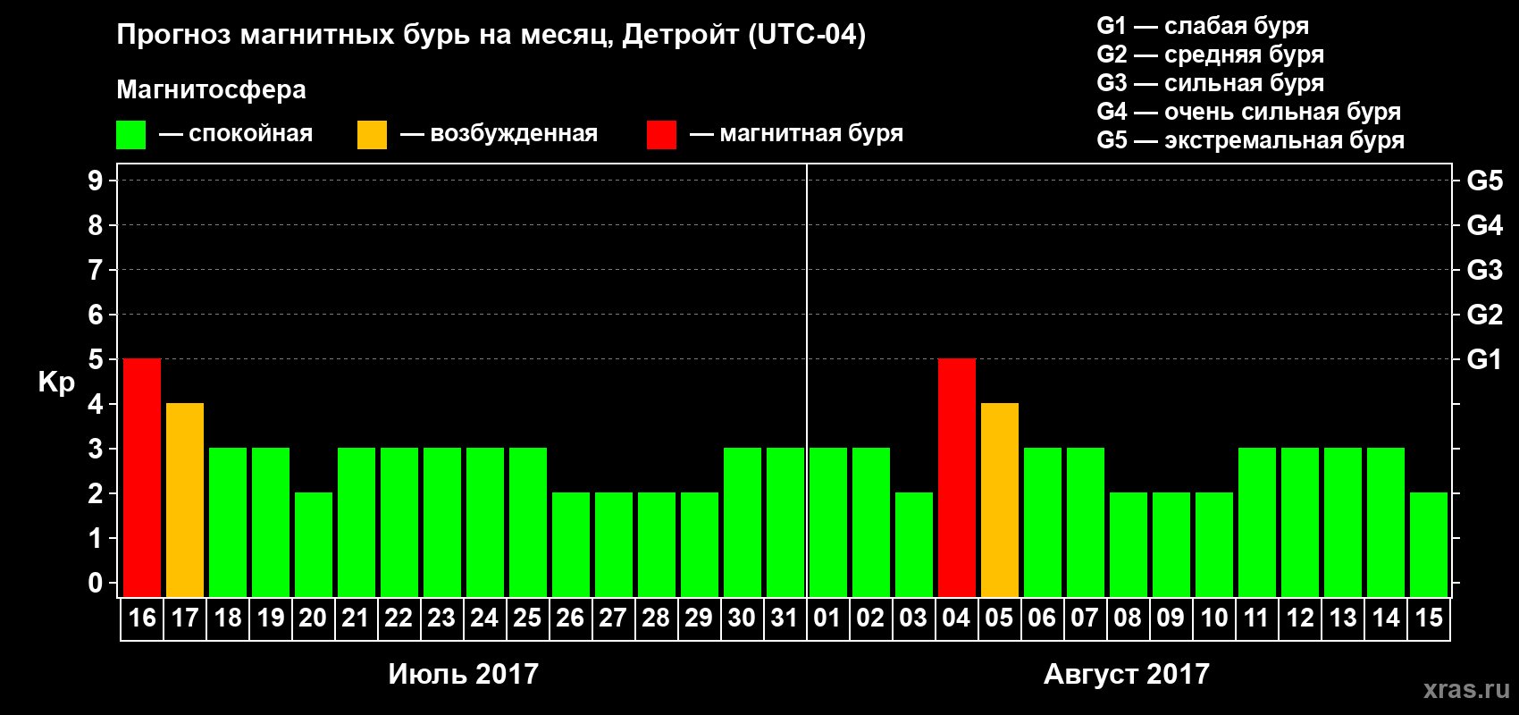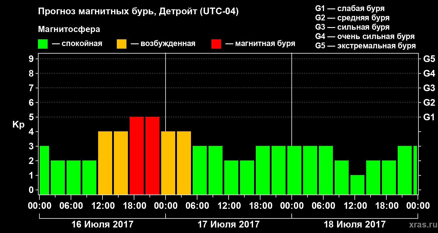 Прогноз магнитных бурь в Детройте — 16 июля 2017 года