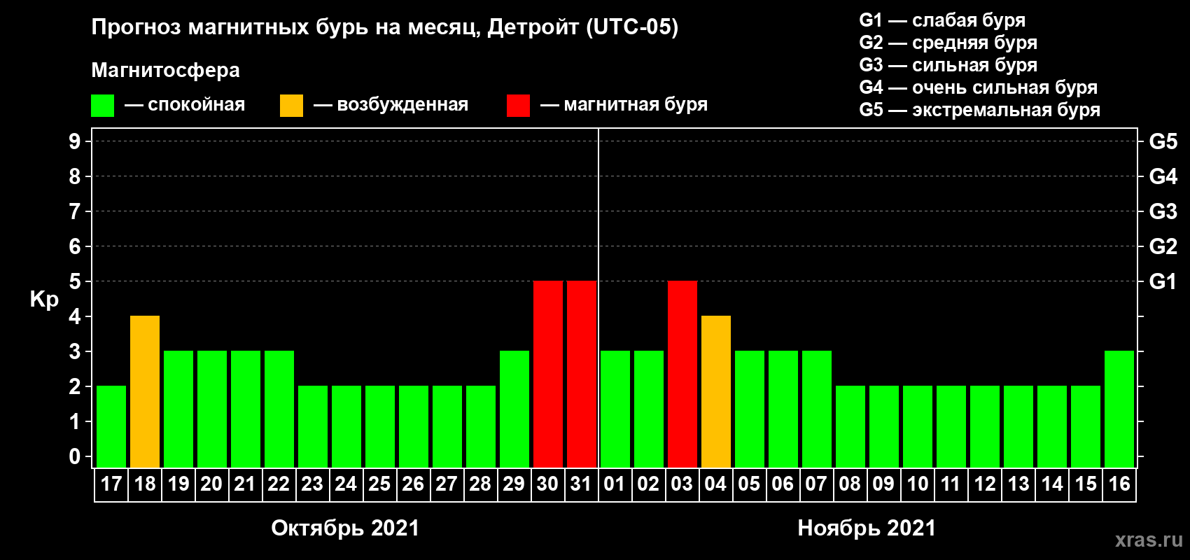 Прогноз магнитных бурь в Детройте — 17 октября 2021 года