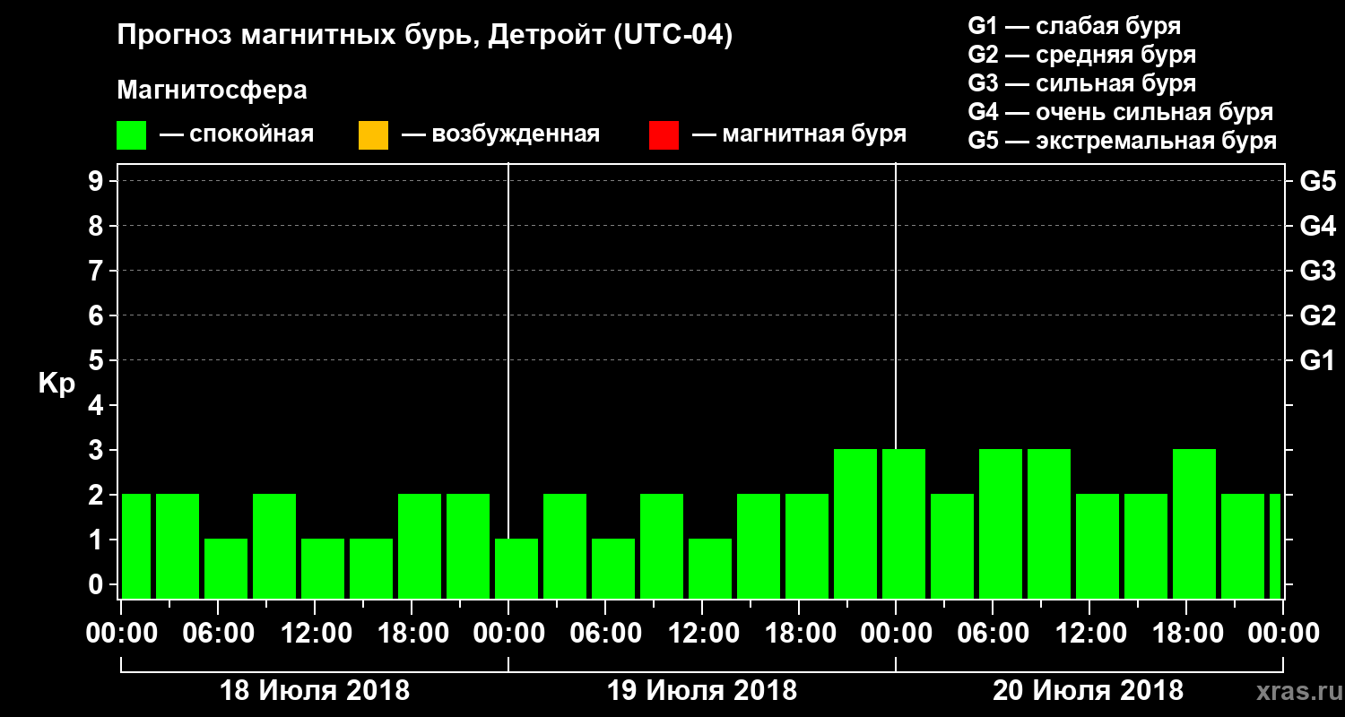 Прогноз магнитных бурь в Детройте — 18 июля 2018 года