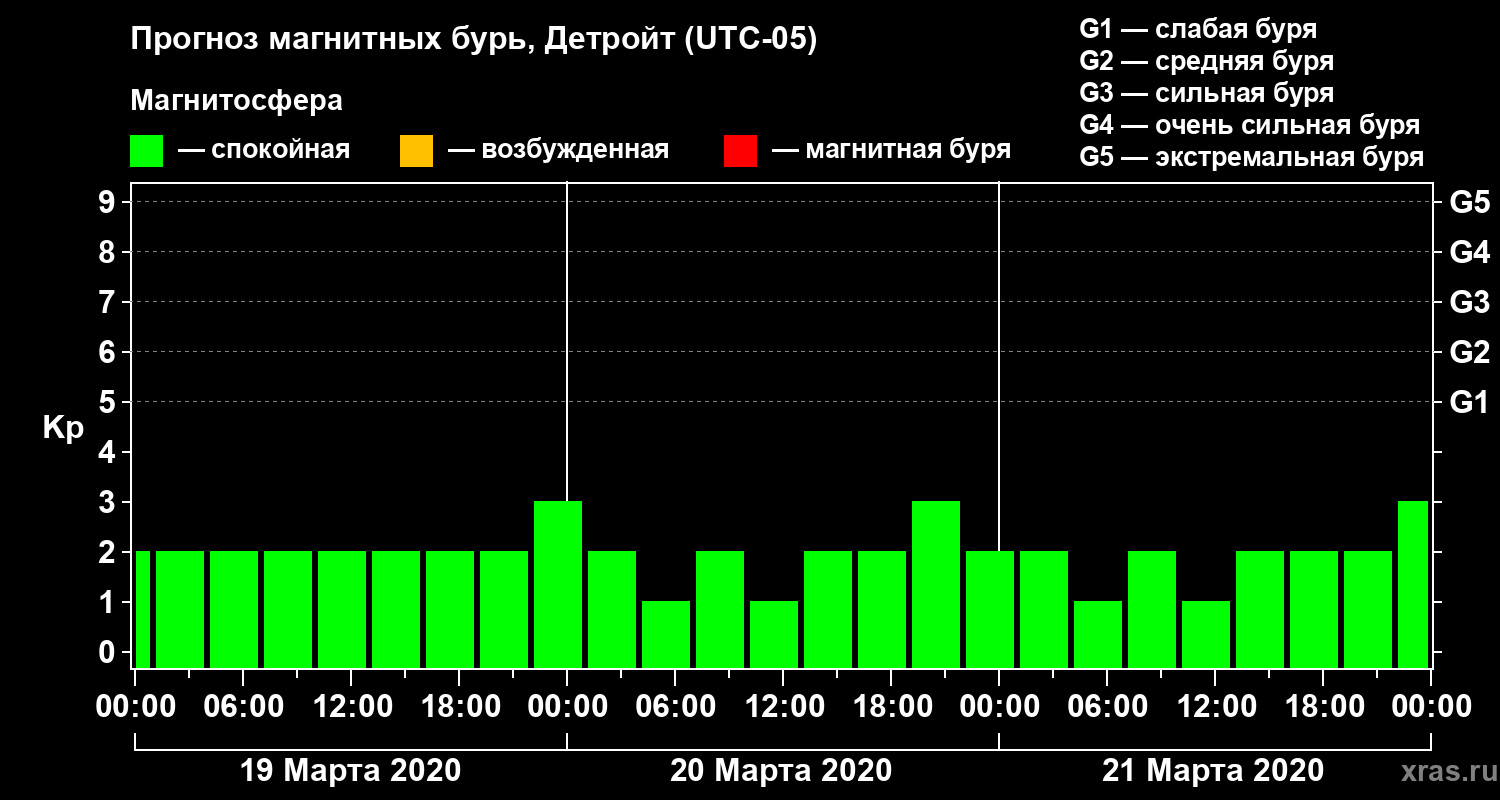Прогноз магнитных бурь в Детройте на 19 марта 2020 года