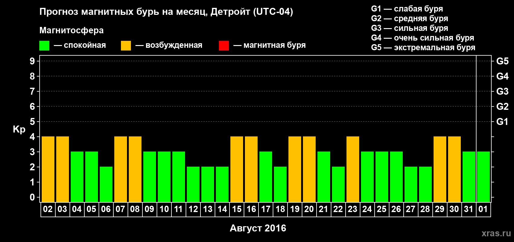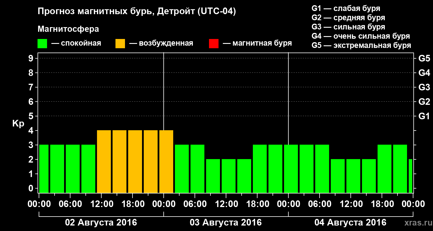 Прогноз магнитных бурь в Детройте на 2 августа 2016 года