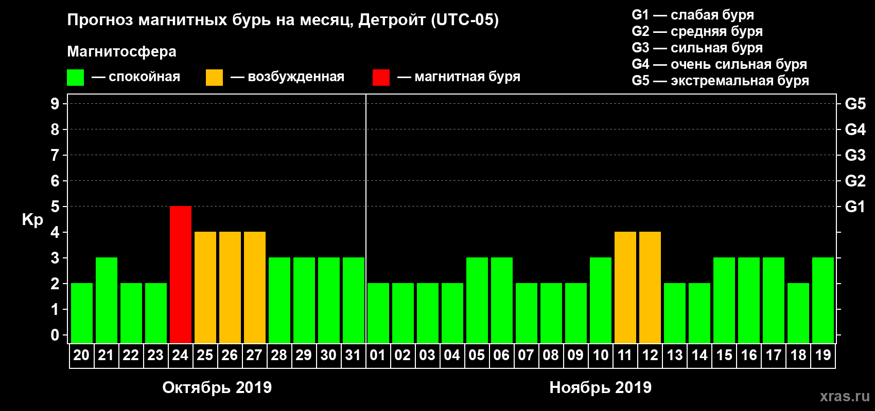 Прогноз магнитных бурь в Детройте на 20 октября 2019 года