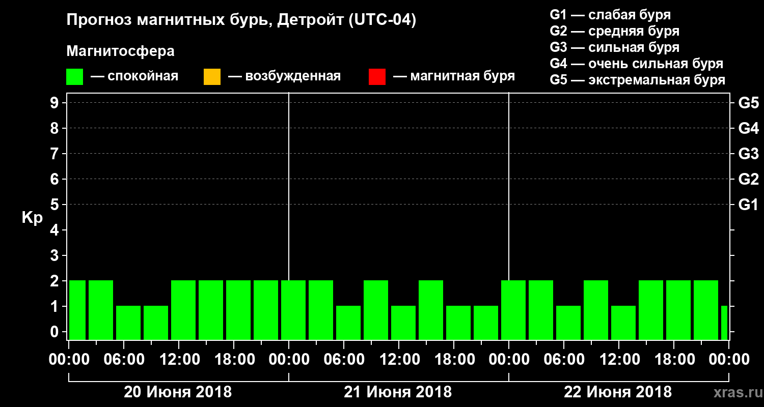 Прогноз магнитных бурь в Детройте на 20 июня 2018 года